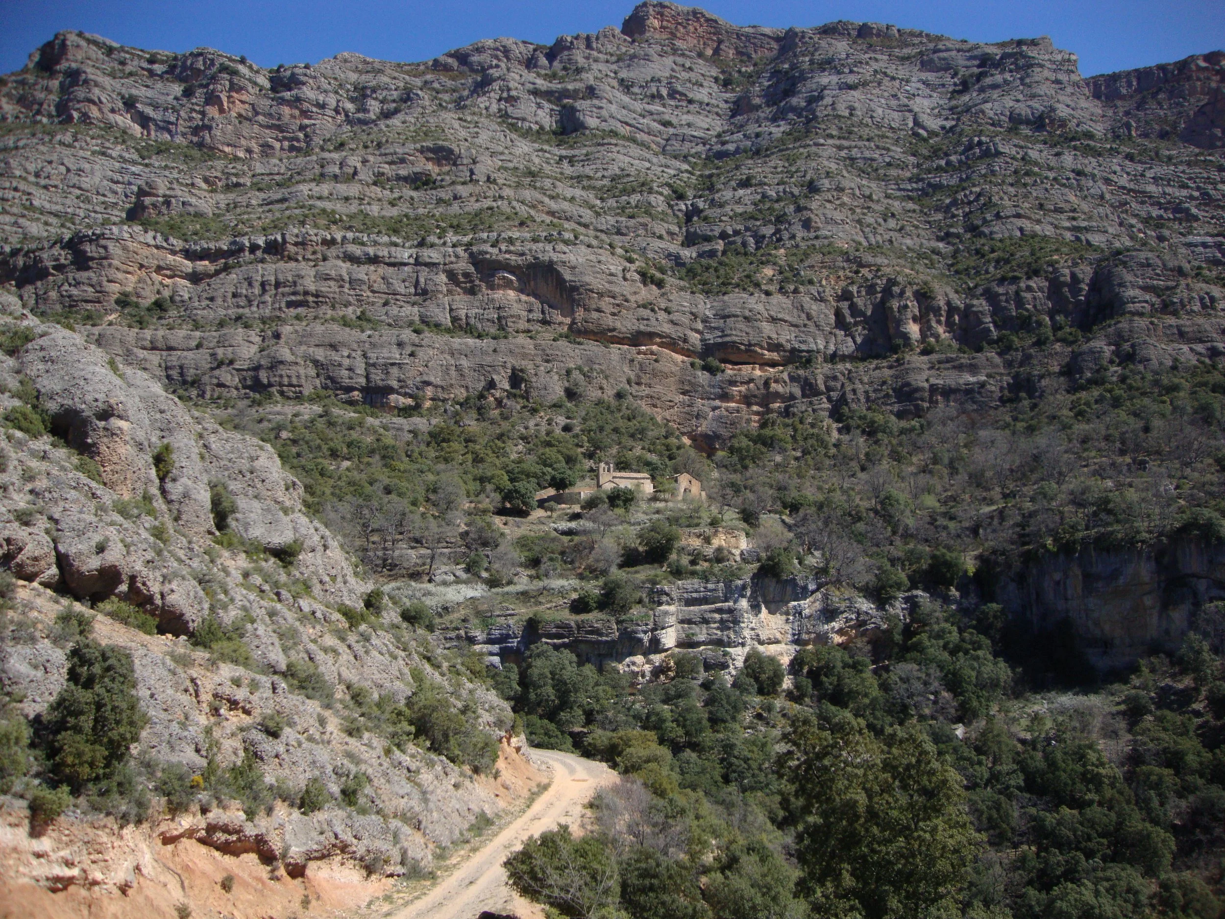 Desde la ermita podemos contemplar las parades de la sierra de Sis, el tozal des Moros, Coll de Ven, eL Tozal de Mesdia ...